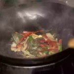Die Hälfte der Basilikum im heißen Fett frittieren